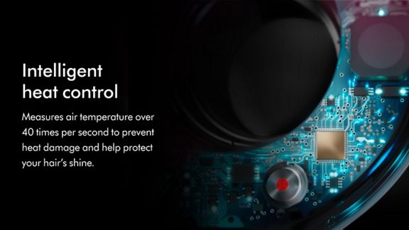 Air Multiplier technology to produce a high-pressure jet of controlled air, for fast drying and precision styling.